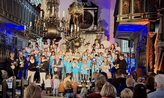 Nachdem den Zuschauern ein abwechslungsreiches Programm von dem Kinder- und Jugendchor der Stadtkirche, den Elbkindern Hetlingen und den Alsterfröschen gemeinsam mit Rolf geboten wurde, sorgte ein Abschlusslied für Emotionen. Unser Ehrenmitglied Britta Meier hatte es mit dem Publikum vorbereitet.